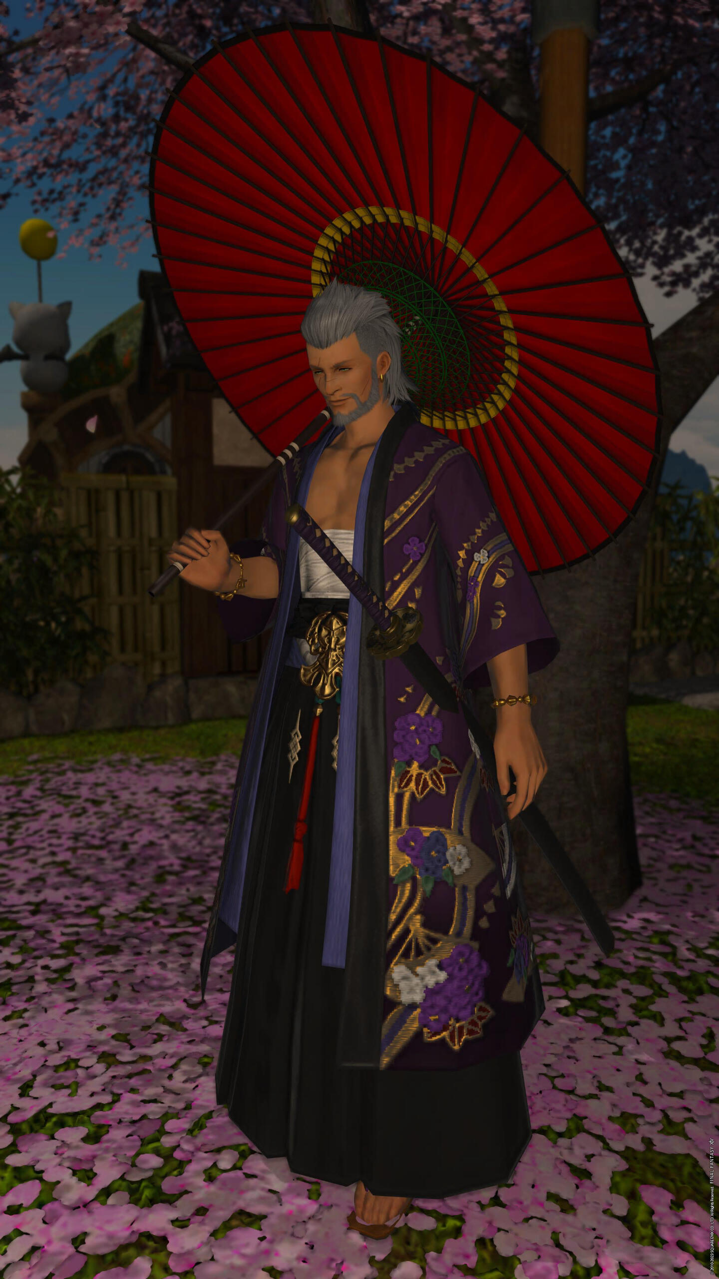 Despite how large the sum of Koban(gil) he receives, it is quickly drained or multiplied when he gambles away at the Chocobo Races, or at his favorite place the Mahjong table.- [Weapon of choice]: Katana